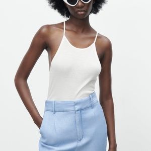 NWT ZARA HIGH-WAISTED PANTS WITH DARTS Light blue