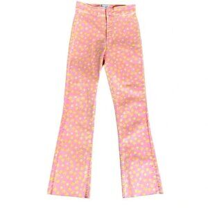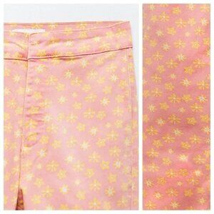 🦋 NWT 🌸 ZARA High Waist Stretch Flared Leg Flower Print Jeans Pink Yellow Sz 0