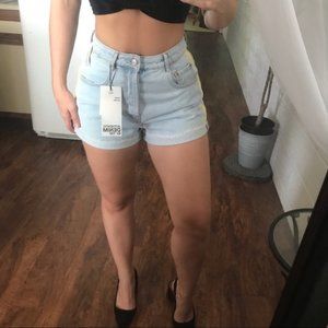 NWT ZARA High Waisted Light Wash Yellow Stripe