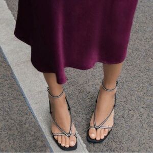 📦MEXT DAY SHIPPING Heeled sandals. Thin straps at front with sparkly toe loop. Ankle strap closure. Squared toe. Sole height: 2.6...