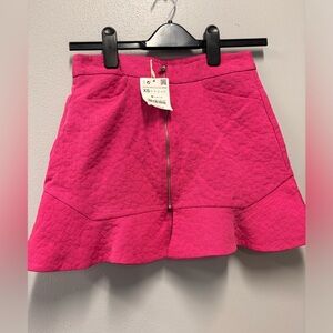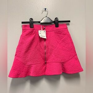 NWT ZARA Hot Pink Barbie Zipper Ruffle Mini Skirt Size Small