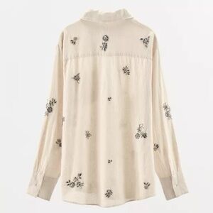 NWT ZARA JEWELED LINEN SHIRT