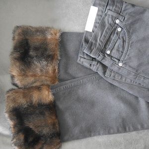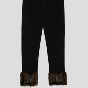 NWT ZARA Jeans Faux Fur Cuff HIGH-RISE