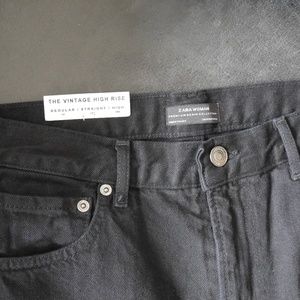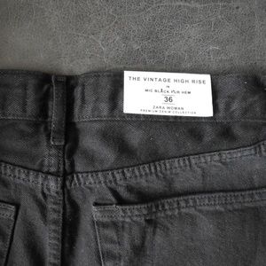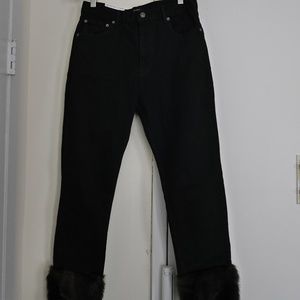 NWT, ZARA Faux Fur Cuff HIGH-RISE JEANS in black denim with faux brown mink fur cuff. Beyond adorable. Heavy-weight quality denim from the "Premium Denim Collection.'" Size 36/US 06 but runs large.. Purchased without the hanging tags but back tag is intact.
