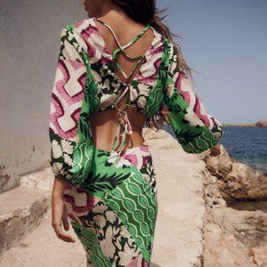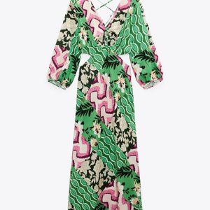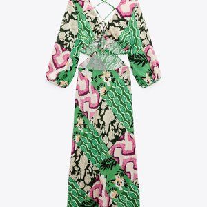 NWT ZARA LINEN BLEND PRINTED MIDI DRESS