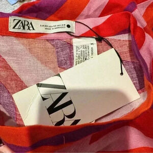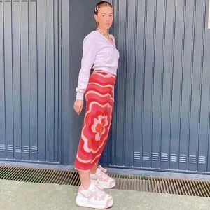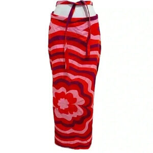 Zara Womens New with tags Red Pink Retro Swirl Flower Midi Tie