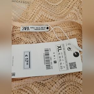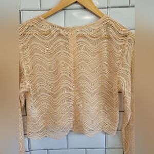 NWT ZARA Ladies Long Sleeve Lightweight Lace Cropped Blouse Crew Neck Scalloped