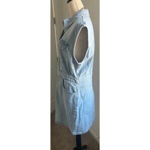 NWT ZARA Light Wash Denim Mini Sleeveless Button Down Cotton Pockets Dress XL