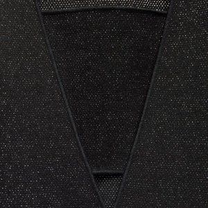 Long dress with V-neck and long sleeves. Metallic thread and front cut outs. Front slit.