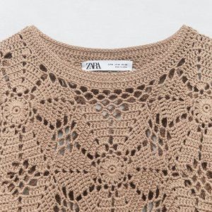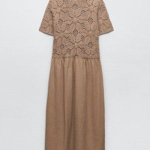 NWT ZARA MIXED MACRAMÉ KNIT MIDI DRESS EARTH - REF. 3653/011 S