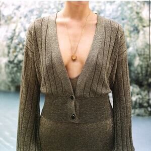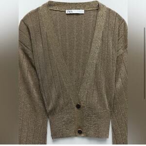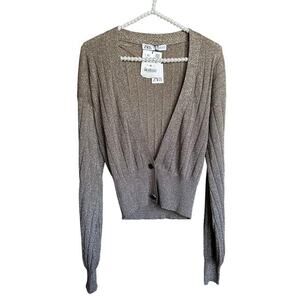 NWT ZARA Metallic Thread Knit Cardigan Sz Medium Bloggers Favorite 9974/104/303