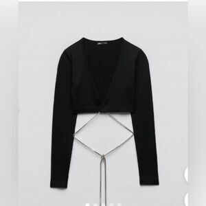 NWT ZARA NWT ZaraβBLACK SEAMLESS Contour RHINESTONE MESH Shirt Crop Top Plunge C