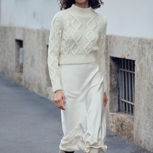 NWT ZARA OPEN BACK CABLE KNIT SWEATER SIZE L