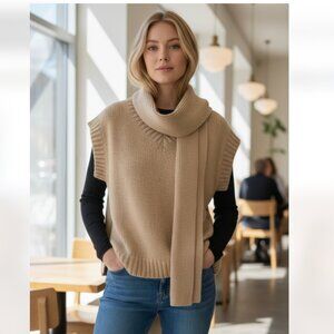 NWT ZARA OVERSIZED KNIT VEST WITH REMOVABLE SCARF BLOGGERS FAVE WOL BLEND