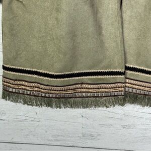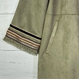 ZARA Olive Green Faux Suede Long Jacket Embroidered Fringe XS Western Boho NEW with tags. Armpit to armpit 20”, shoulder to hem 30”