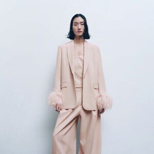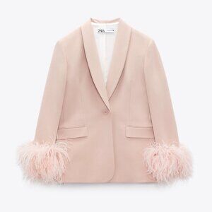NWT ZARA PINK NUDE FEATHER BLAZER S