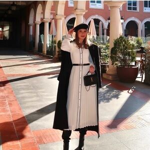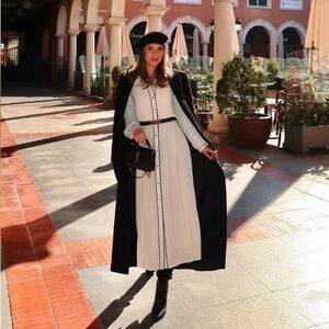 Step out in style with this elegant black and white dress. Perfect for any occasion, this dress combines classic colors with a modern design.