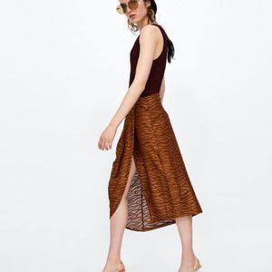 NWT ZARA Pleated Jacquard Wrap Skirt