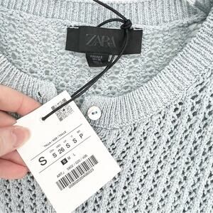 NWT ZARA Pointelle Knit Cardigan S Blue