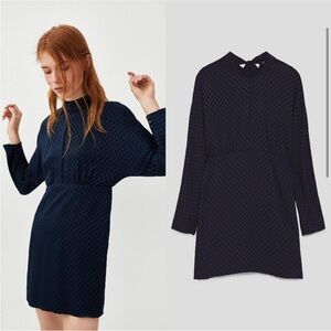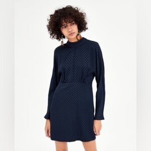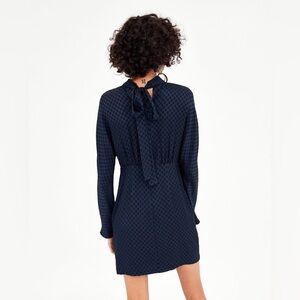 🔥NWT ZARA Polka Dots Navy Mini Long Sleeves Bow Tie Cocktail Formal Party Dress