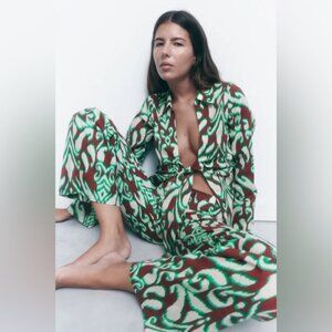 NWT ZARA Printed mid-rise straight leg Front zip and button closure LIGHTWEIGHT Pants Sz L 4479/243