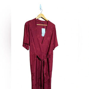 NWT ZARA RED BURGUNDY WIDE LEG FLORAL PRINT JACQUARD JUMPSUIT BELT SIZE SMALL