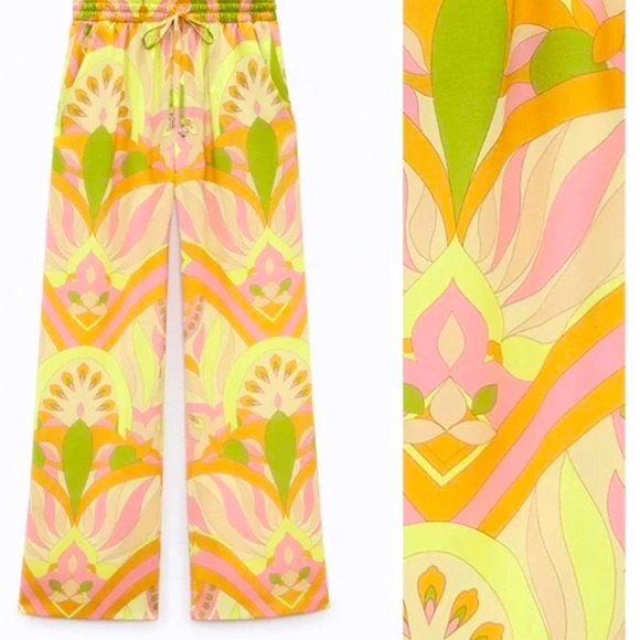 NWT ZARA RETRO PRINT WIDE-LEG DRAWSTRING PANTS Sz XS