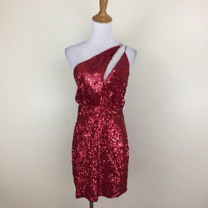NWT ZARA Red Embellished Sequined Asymmetric Double Strap Front Lined Dress
