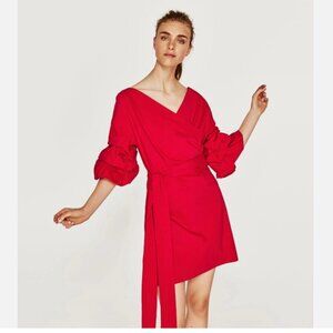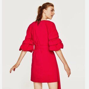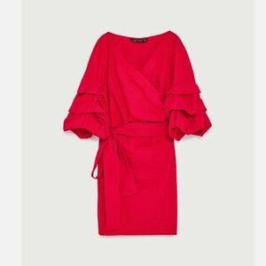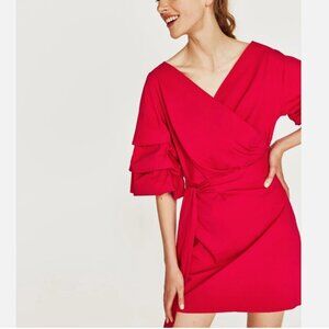 NWT ZARA Red Ruffle Sleeve Wrap Mini Dress XS
