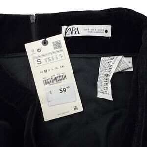 NWT ZARA Ruched Draped Velvet High Waisted Mini Black Skirt Size Small