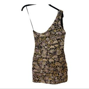 NEW with tags ZARA Ruched Floral One Shoulder Metallic Bodycon Mini Dress