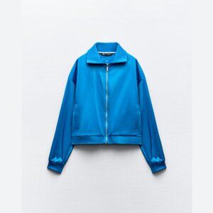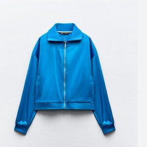 NWT ZARA SATIN EFFECT JACKET WITH SIDE STRIPE Bloggers Fave Blue Medium