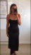 Midi dress with sweetheart neckline and adjustable thin straps. Ruching detail at side. Slit at hem. Back hidden in-seam zip closure.