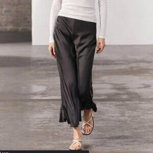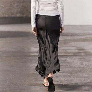 NWT ZARA SATIN EFFECT MIDI SKIRT ZW COLLECTION GRAY