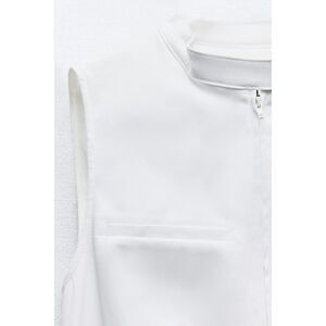 Slim-fit vest top with a round neckline. Decorative slit pocket on the chest. Contrast thin belt. Zip and buttons