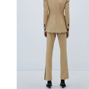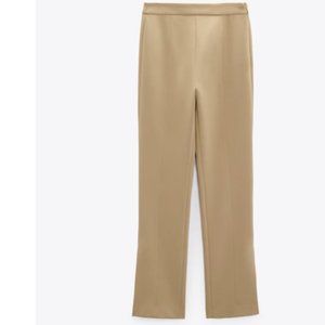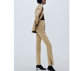 NWT ZARA SPLIT-HEM SKINNY TROUSERS High-waist Camel