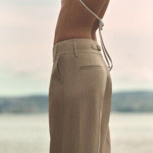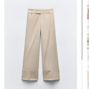 NWT ZARA STRAIGHT LEG PANTS WITH BELT LOOPS TAUPE BROWN