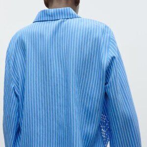 NWT ZARA STRIPED EMBROIDERED EYELET SHIRT 3897/056