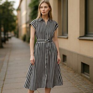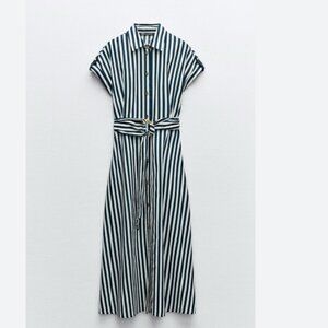 NWT ZARA STRIPED LINEN/COTTON BLEND MIDI SHIRTDRESS Bloggers Fave