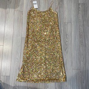 NWT ZARA Sequin Knit Slip Dress