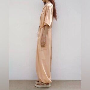 NWT ZARA Shirt-Style CARGO Full Length Oversized Jumpsuit COTTON 7901/216 Sz M&L