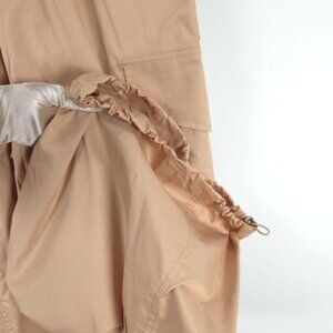 Super trendy jumpsuit. Short sleeve, snap closure, side pockets, elastic waist and hem with toggles, cargo style, wide leg