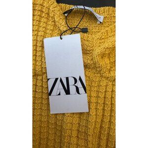 NWT ZARA Small Yellow Knit Crop Top W/ Floral Strap Dainty Detail Cotton