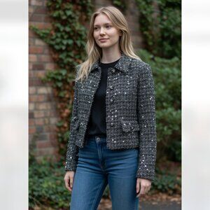 NWT ZARA TEXTURED SEQUIN JACKET BLOGGERS FAVE FESTIVE LIMITED EDITION BLACK