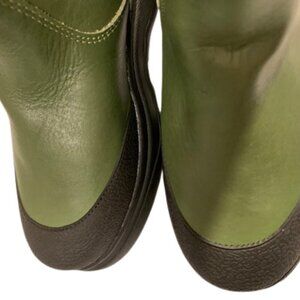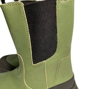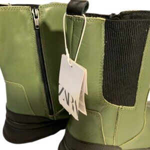 NWT ZARA Tall Leather Combat Style Ankle Boots High Low in Green and Black Sz 7