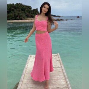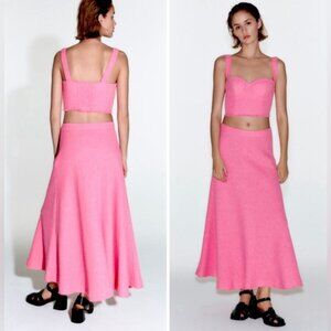 NWT ZARA Textured Tweed Flared Hem Candy Pink Long Skirt 2929/469/633 Size XL
