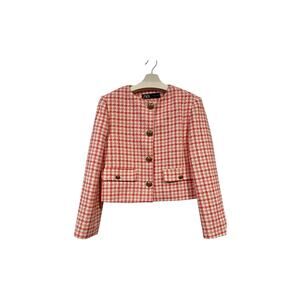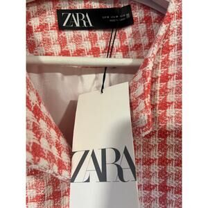 NWT ZARA Tweed Houndstooth Blazer Gold buttons White Pink Small