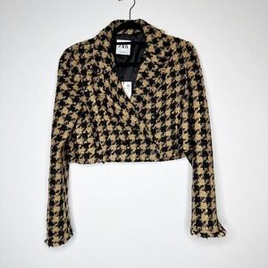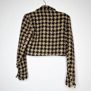 NWT ZARA Tweed Houndstooth Cropped Textured Blazer Jacket Women's Brown Size L