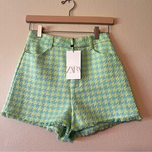 NWT | ZARA Tweed Houndstooth Green blue Shirts Sz. XS