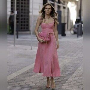 NWT ZARA Tweed Pink Maxi Skirt Large